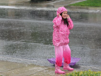 We're getting a lot of rain this year. And Dad lets us play in it!!