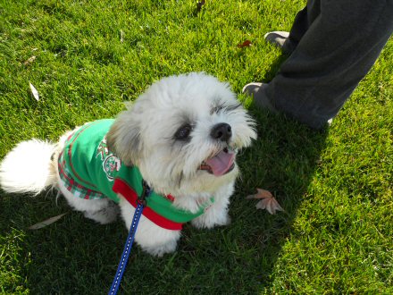 Even Jackie got a gift--here he is rocking his Christmas Day best.