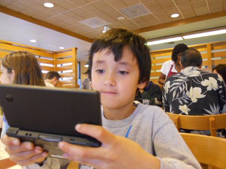 Even with all the young ladies around, Bigs can't keep away from his DSi.