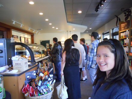Aaaah, it's like home away from home. Standing in line at Starbucks.