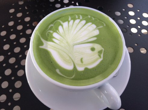 of a green tea latte from