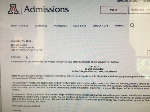 ey, I got into Arizona. Dad and I may go for a visit but I'm holding out for CU.