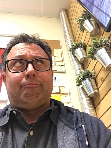 Back in Phoenix that night, dad's a bit worried for our vegan dinner.