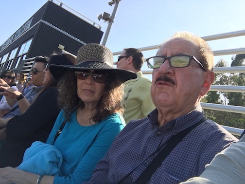 Berta and Papa Leo in the stands waiting for the action to start.