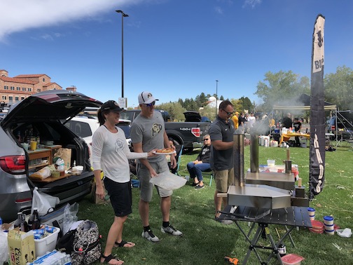 Chris and Michael firing up their dueling pizza overs for a tasty morning tailgate.