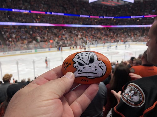 We found this painted rock outside the arena--pretty cool, huh. I think I'll keep it.
