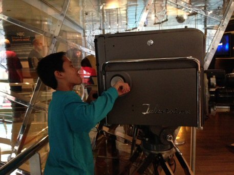 Here's Ryan testing out an authentic camera from the 1940's.