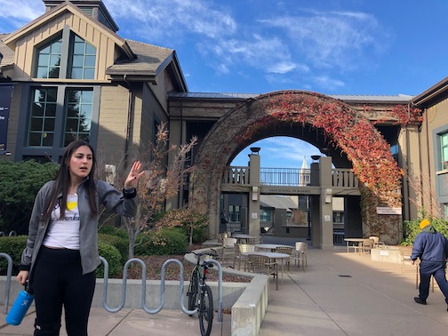 Our tour guide for the UC Berkeley campus. Nice campus, strange students.
