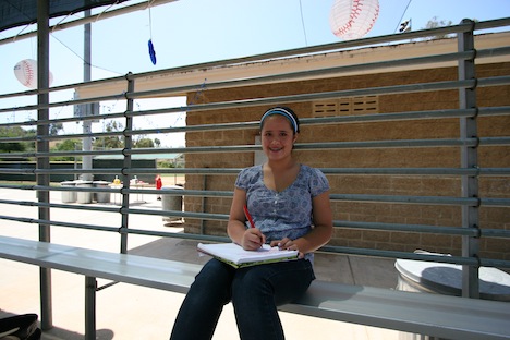 Getting some homework done before one of Ryan's little league games.