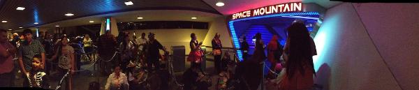 Waiting in line for my favorite ride at Disneyland--the famed Space Mountain, Halloween-style.