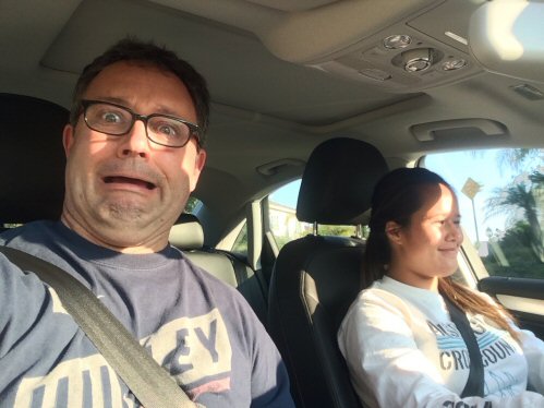 Dad doesn't seem to be noticing all the driving strides I've been making.